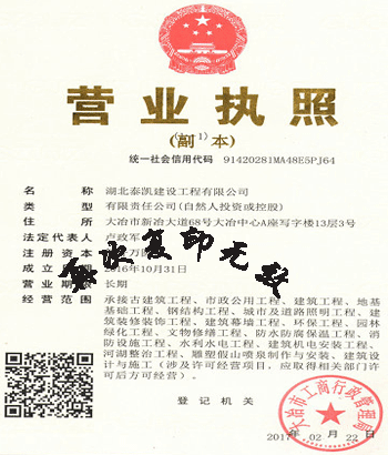 Copyright @ 2016—2017,www.hbtkjs.com,All Rights Reserved 湖北泰凯建设工程有限公司 鄂ICP备17020595号 联系地址:湖北省大冶市新冶大道68号大冶中心A座写字楼13层